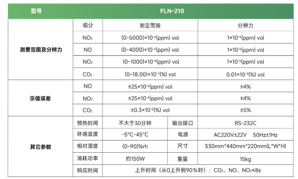 FLN-210汽車NOx分析儀采用不分光紅外NDIR原理測量柴油車排放中的NO/NO?氣體濃度及CO?濃度。